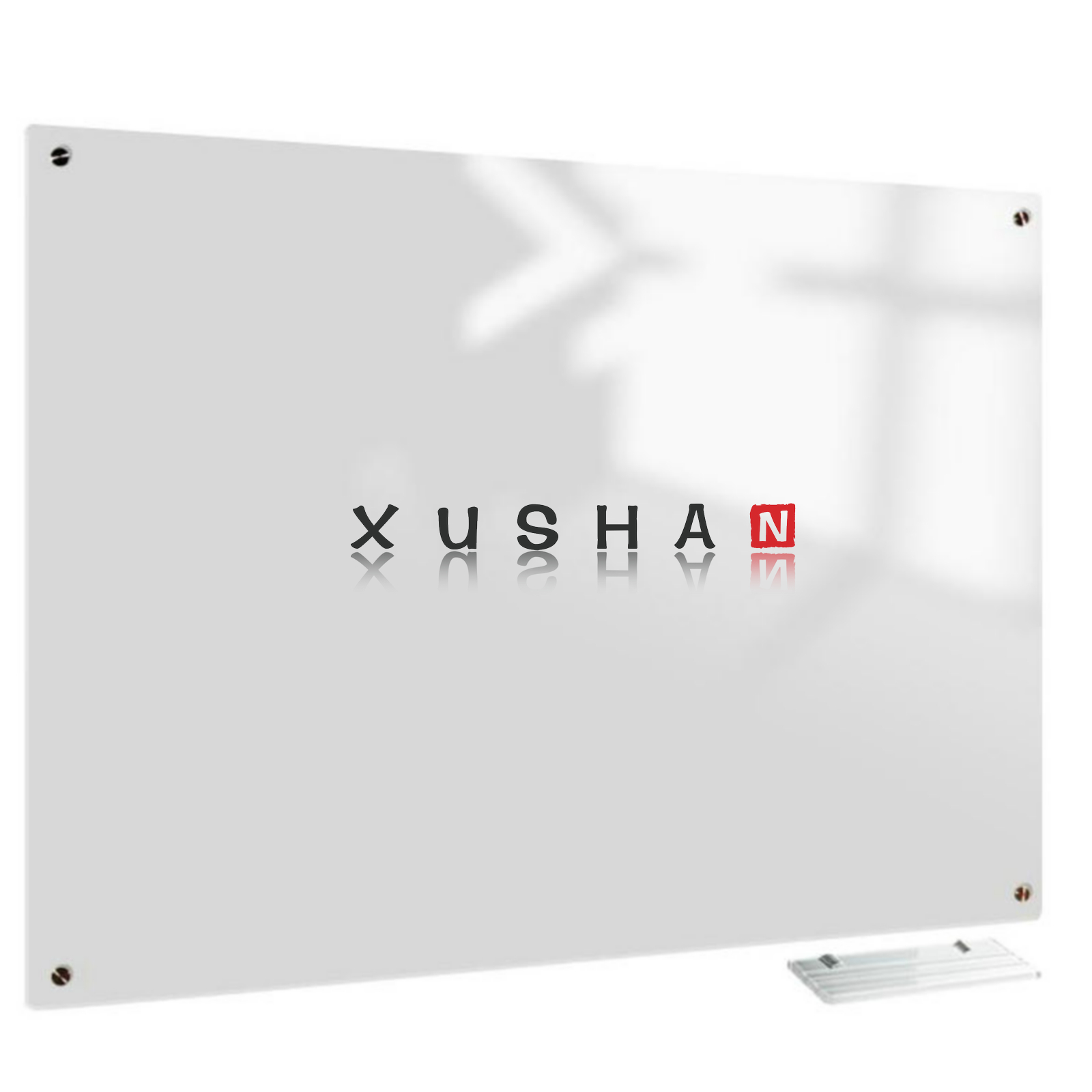 For safety, the board is made from tempered glass. The white glass dry erase board has a universal mounting system, as it can be hung vertically or horizontally to fit your allocated space. All wall hanging hardware is hidden under the mounting bolts for a sleek and modern appearance. Mounting hardware and instructions are included for quick and easy mounting. The glass writing surface is suitable for regular whiteboard markers and is easily dry erasable. The whiteboard board is also magnetic, allowing you to attach documents to the whiteboard with magnets.